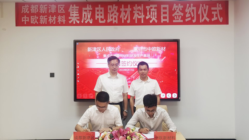 2023年6月13日,新津區(qū)政府與天賦智能制造產(chǎn)業(yè)園領(lǐng)導(dǎo)們與深圳市中歐新材料有限公司關(guān)于集成電路應(yīng)用材料研發(fā)生產(chǎn)基地投資項目的簽約儀式在中歐新材工廠會議室舉行,并取得了圓滿成功。新津區(qū)委副書記、區(qū)政府區(qū)長胡建平,新津區(qū)政府辦公室主任楊敏,新津區(qū)經(jīng)信局、新科局局長何仲恒,天府智能制造產(chǎn)業(yè)園黨工委委員韓霄,深圳市中歐新材料有限公司總經(jīng)理劉誠,副總經(jīng)理陳殷等出席了本次儀式。